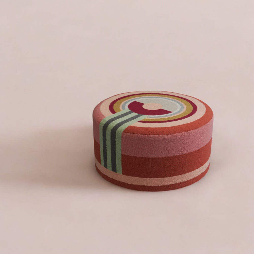 Round ottoman woven on a pedal loom using cotton and the Peyon technique. Crafted in the traditional Wayuu technique in Colombia.