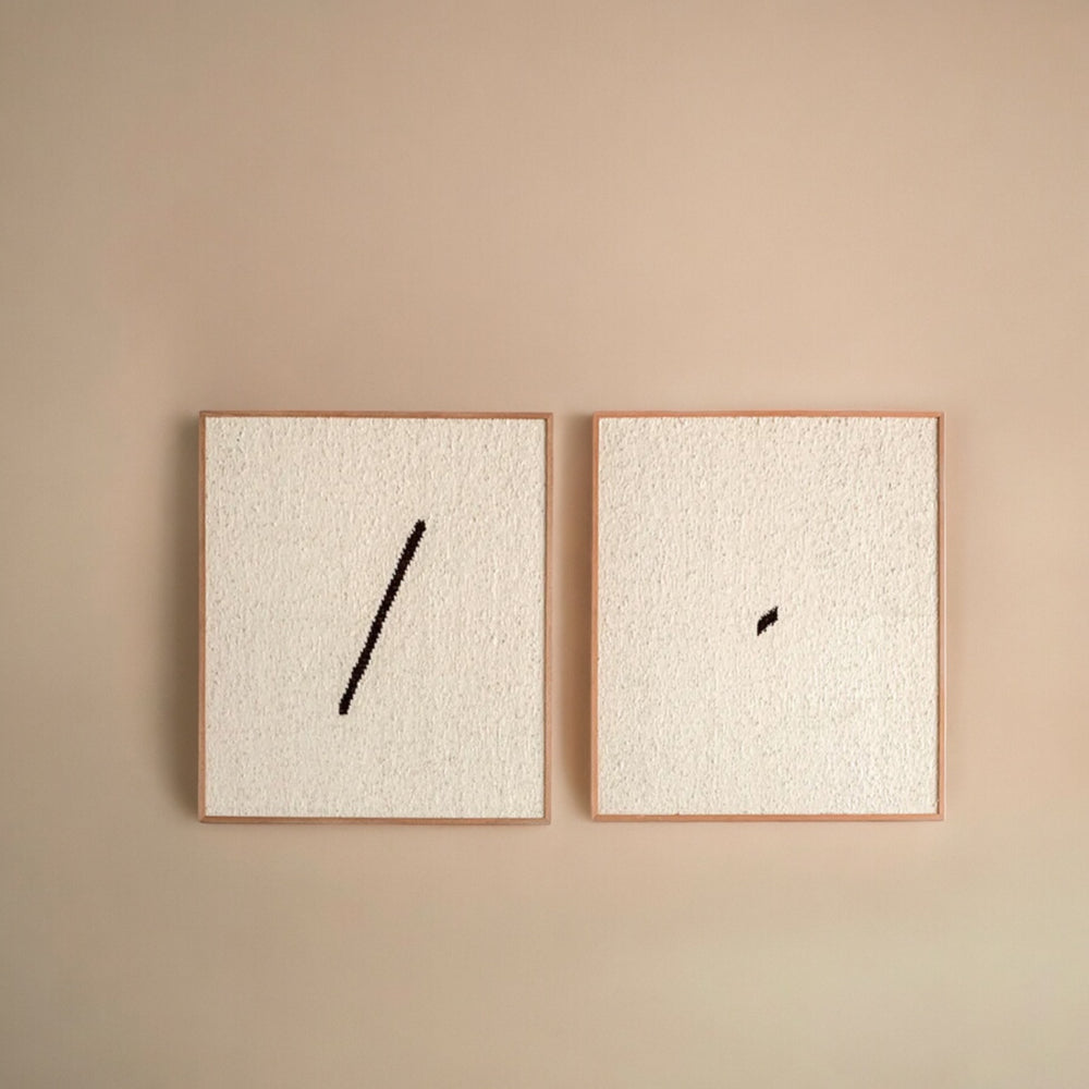 Línea Woven wall arts are made in a pedal loom from 100% hand-spun wool. Each piece is hand-loomed in an artisan community in the Momostenango region of the Guatemalan highlands. The natural wool gives it a lush, luxurious feel. Our wall arts are crafted by hand, one at a time, so there will be slight variations in size and color.