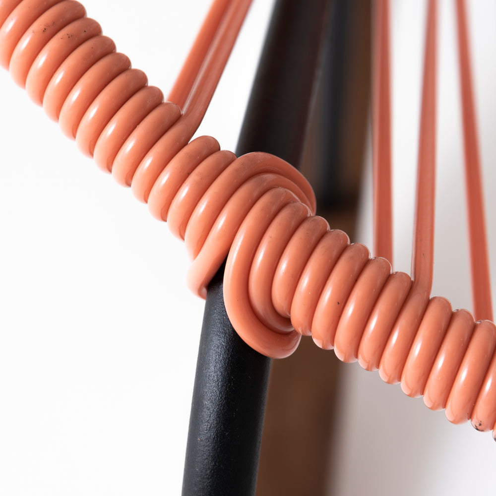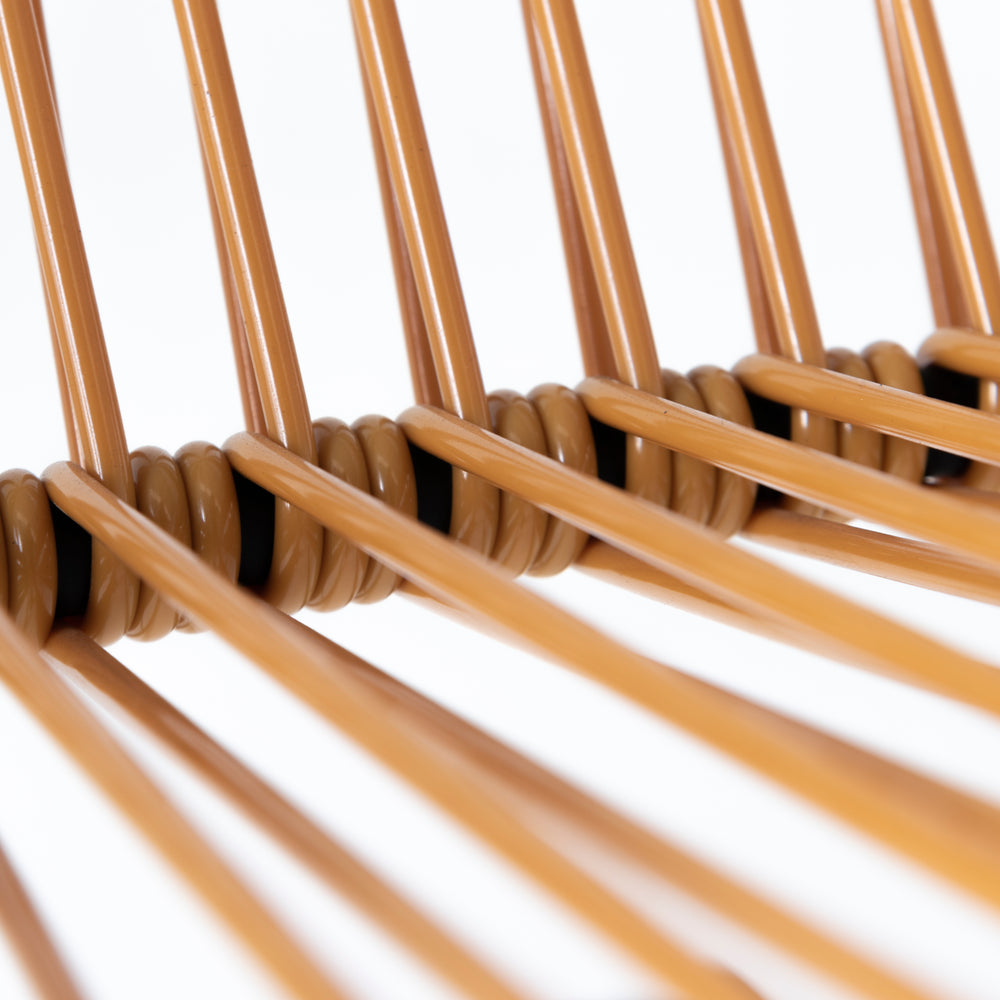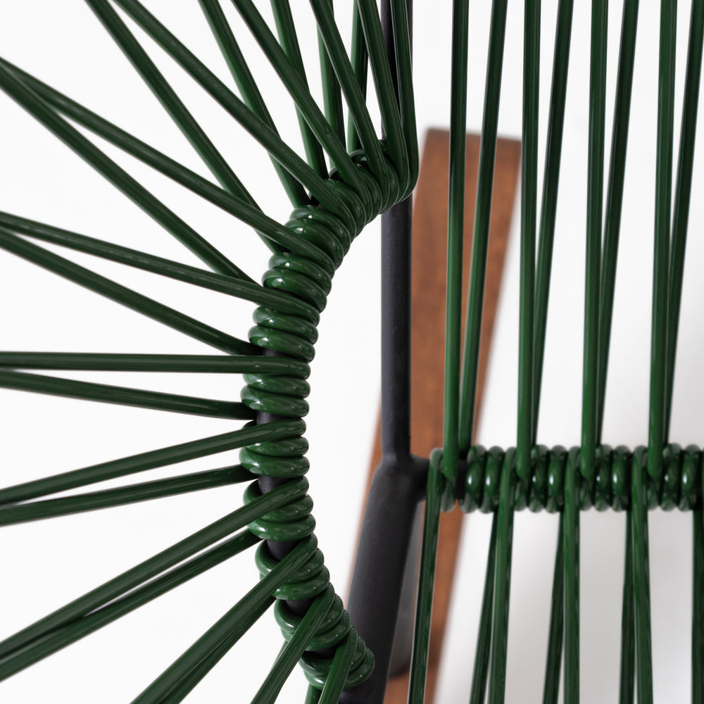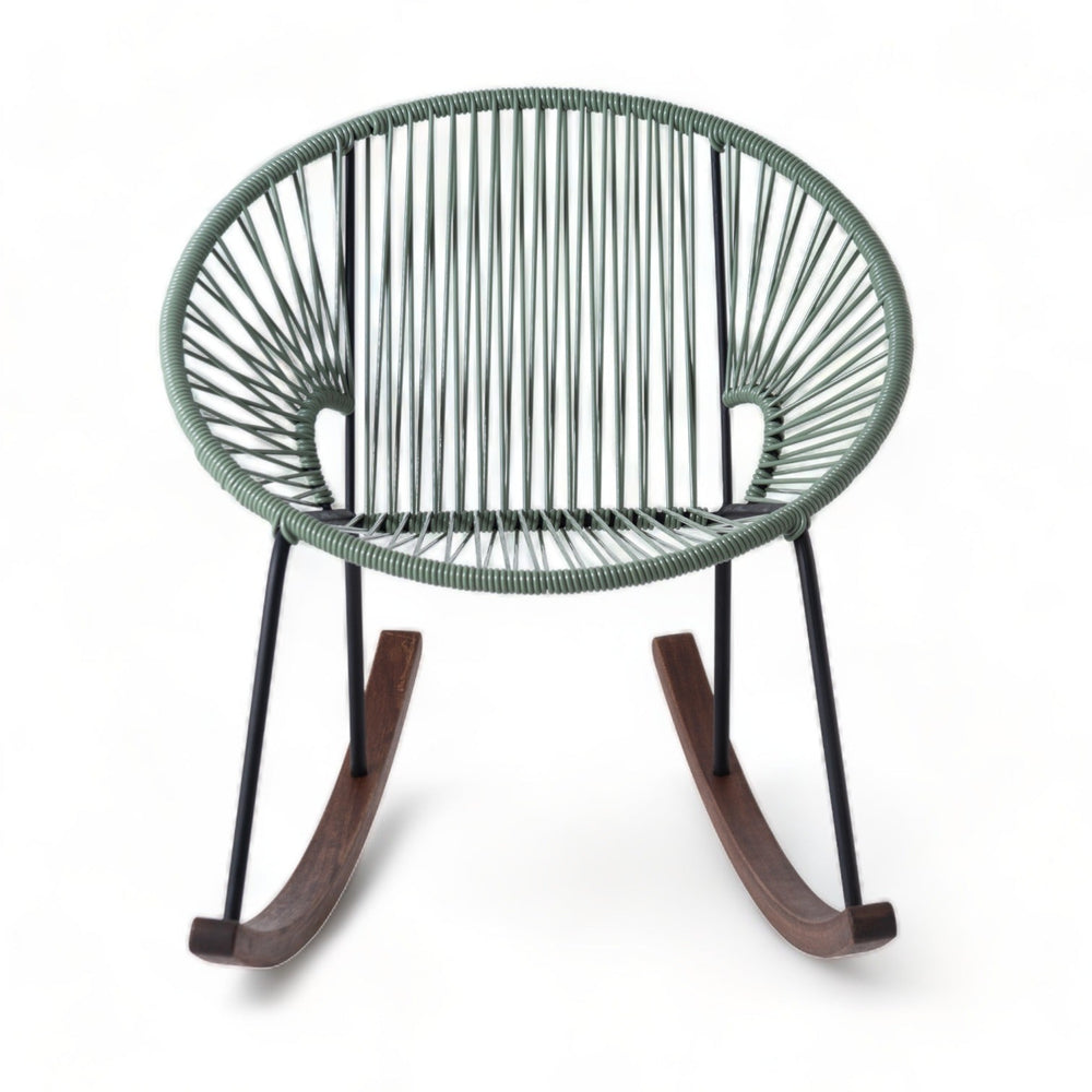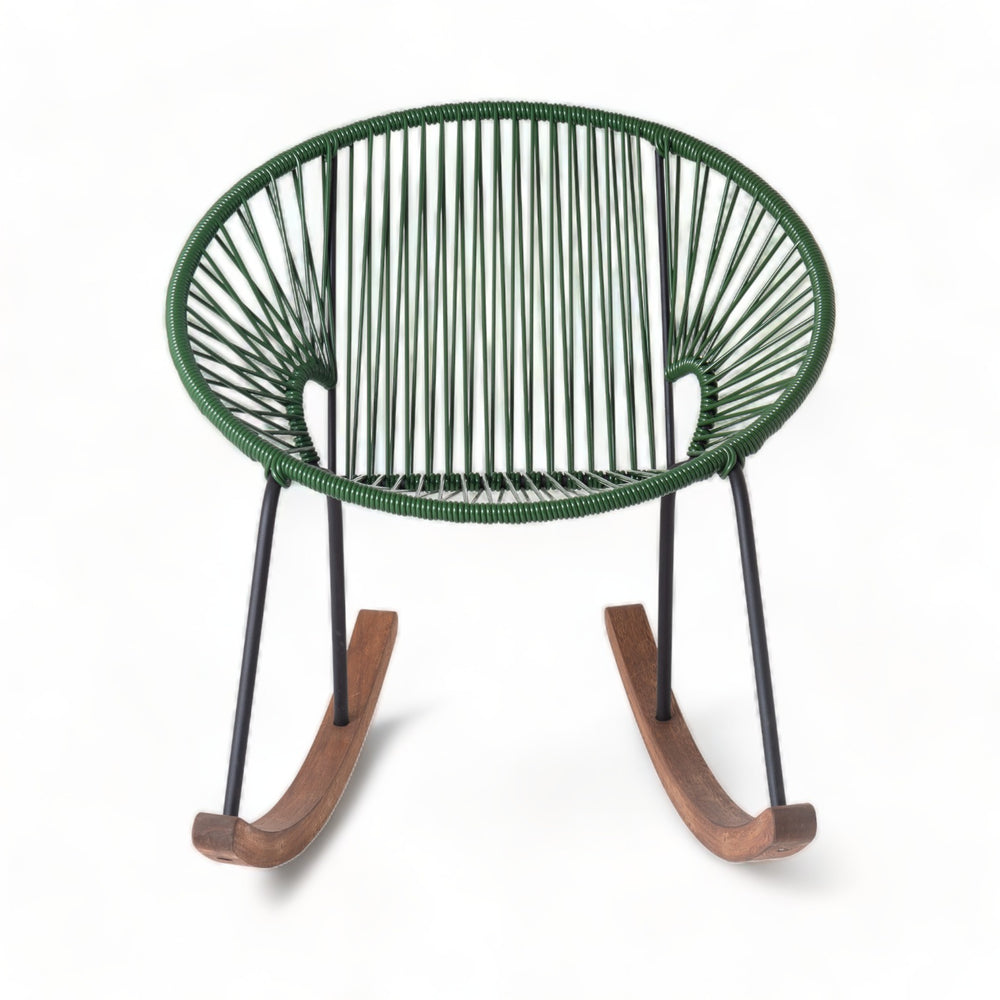 Ixtapa Rocking Lounge Chair by Mexa. Featuring wooden legs, a metal frame, and hand-woven PVC. Suitable for both indoor and outdoor use. Designed by Mexa.