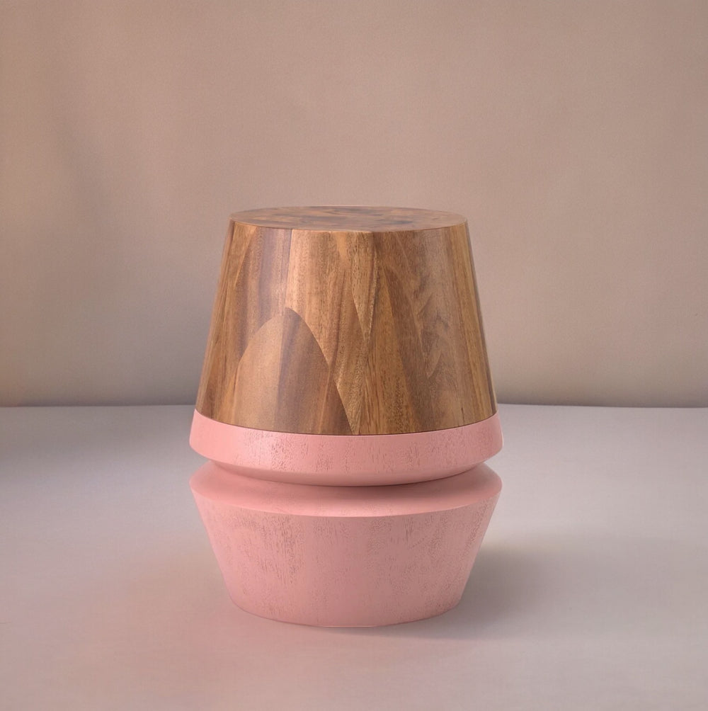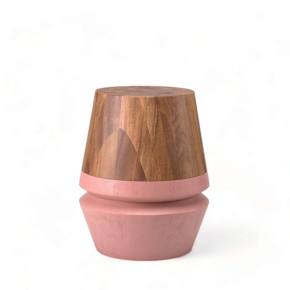 Side Table or Stool crafted using conacaste wood with a coral color band. Designed and made in Guatemala by Ricardo Velasquez x LĀBRICA.