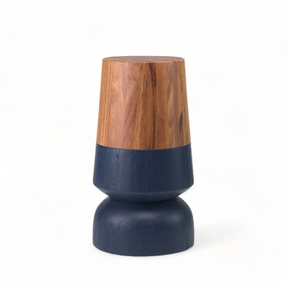 Side Table or Stool crafted using conacaste wood with a navy color band. Designed and made in Guatemala by Ricardo Velasquez x LĀBRICA.