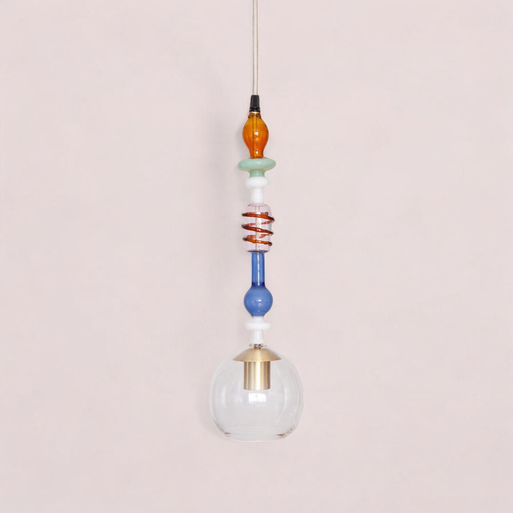 Ceiling lamp in blown glass and bronze. Each piece is individually crafted in blown glass and assembled with bronze appliqués. 110V, with bronze accessories and a ceiling canopy.