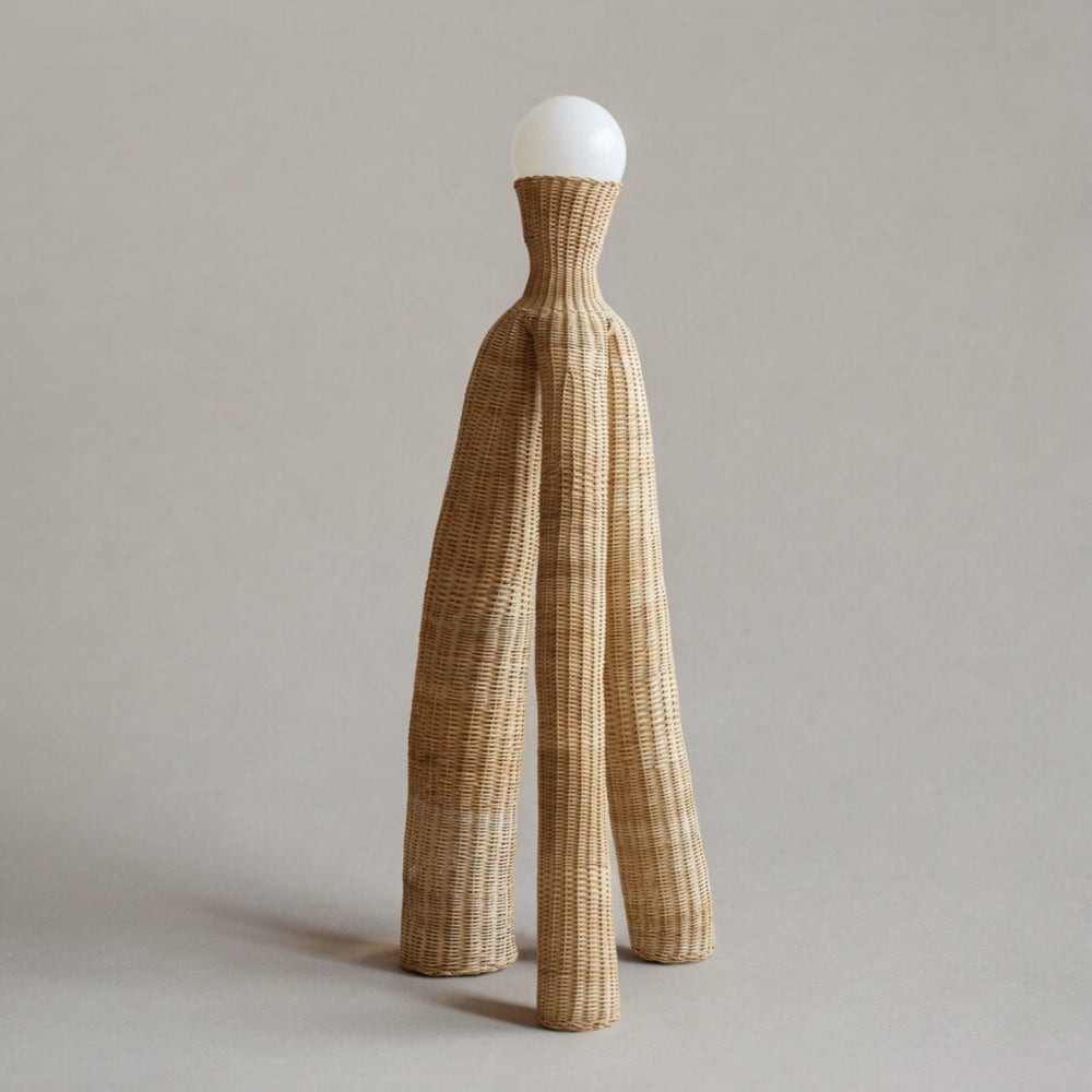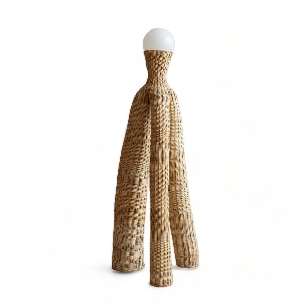 Floor Lamp Artefacto LS16 by Lørdag & Søndag in natural colored fiber. Designed in Mexico City, handcrafted in Oaxaca from natural fibers. Glossy white glass sphere. 110V. Bulb included.
