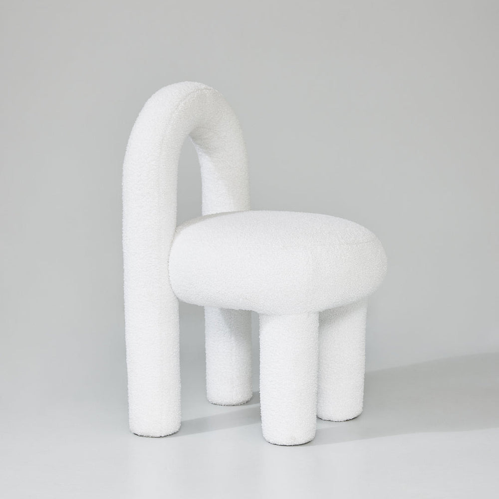 Lounge Chair by Tu Taller, featuring playful curves and upholstered in green fabric. COM (Customer's Own Material) available.