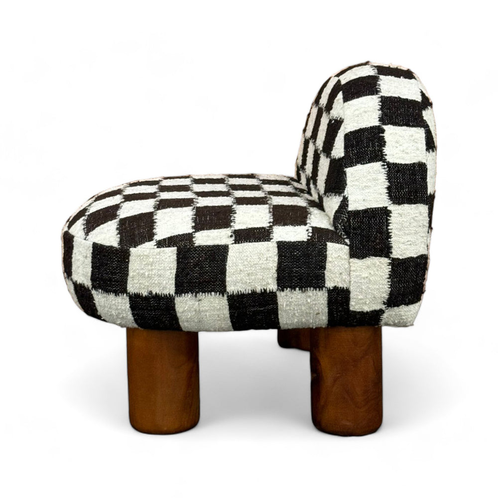 The Condesa explores functionality, shape, and craft. Artisans in Momostenango, Guatemala, weaved each piece in a pedal loom using hand-spun wool. Each piece is upholstered in Guatemala City, using pinewood.