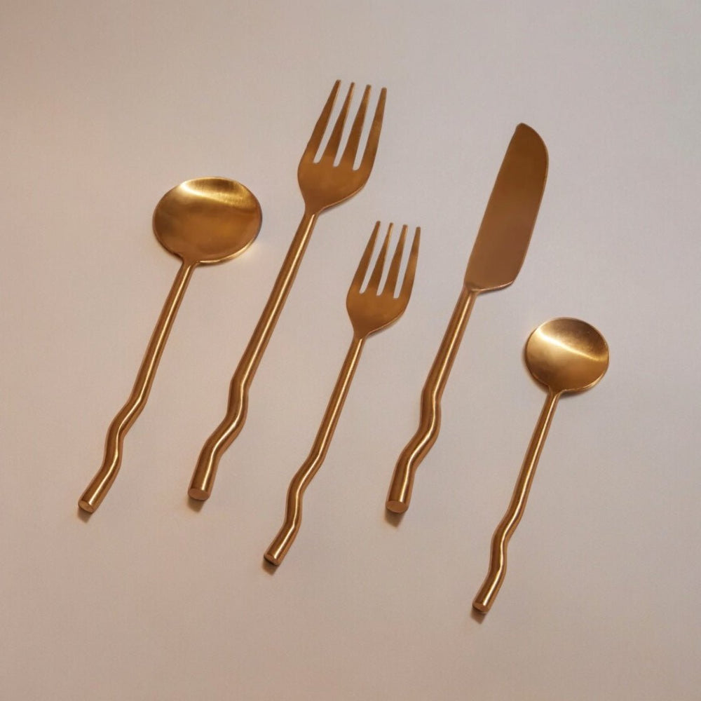 Stainless Steel Brushed Brass Finish Cutlery Set of 20, Dishwasher Safe, Handcrafted in India.