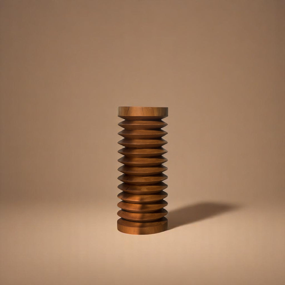 Circular stool made of solid cedar wood with vintage iroko finish. For indoor use.
