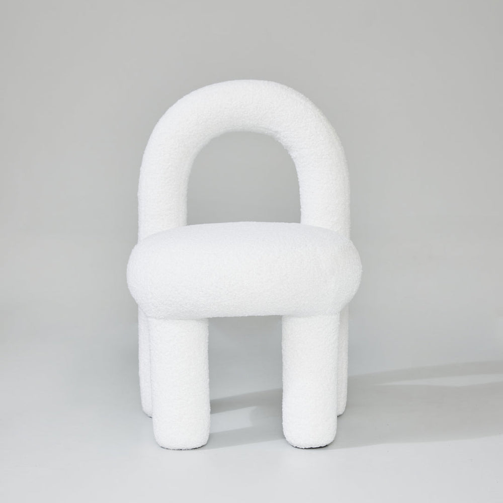 Dining Chair Chair by Tu Taller, featuring playful curves and upholstered in boucle white fabric.