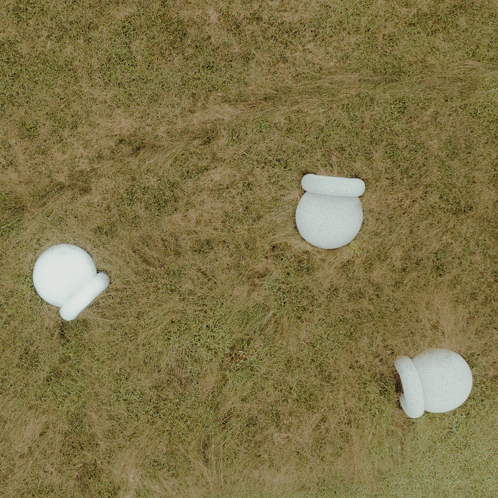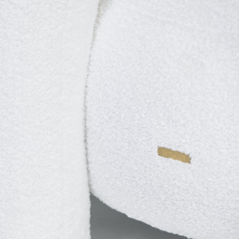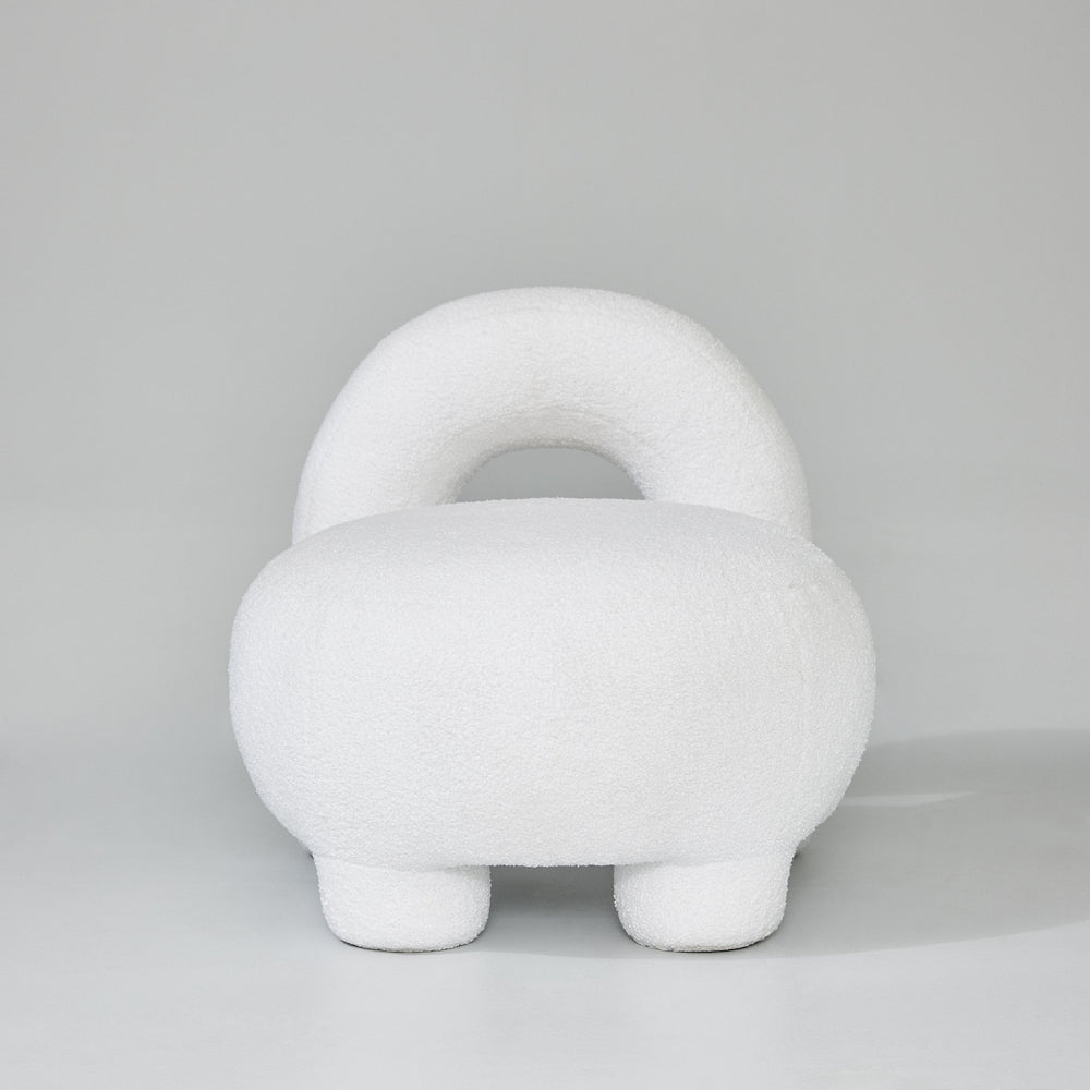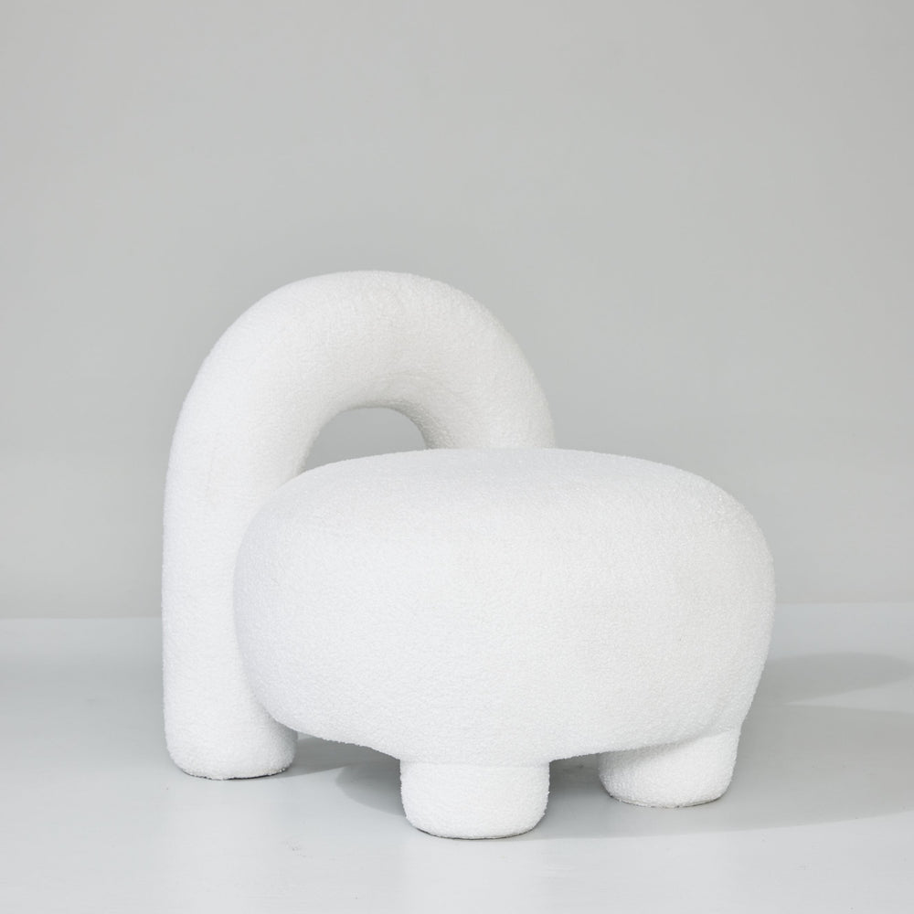 Lounge Chair with arms by Tu Taller, featuring playful curves and upholstered in green fabric. COM (Customer's Own Material) available.