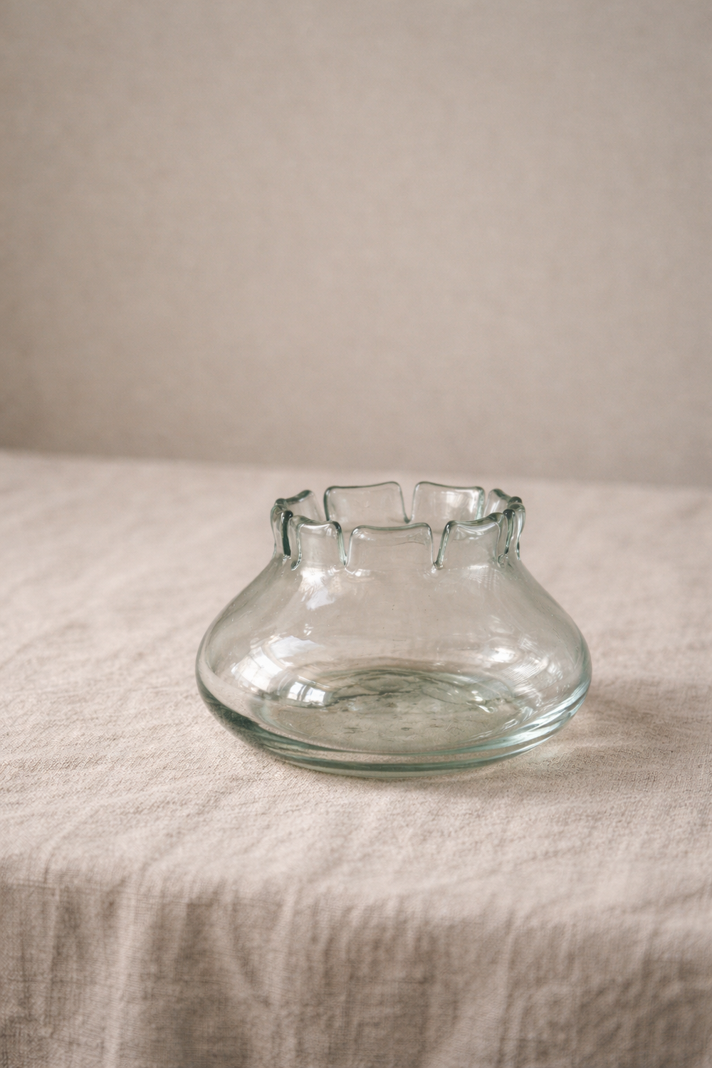 The Laguna Cristal bud vase celebrates sustainability by using recycled glass. Each piece is blown and then cut to create this effect. Holds Water.