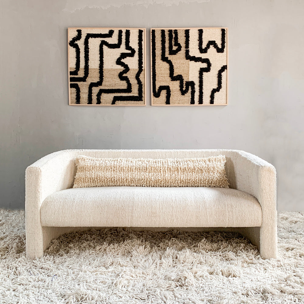 The Linear II Pillow Cover is made in a pedal loom from 100% hand-spun wool. Each piece is hand-loomed in an artisan community in the Momostenango region of the Guatemalan highlands. The natural wool gives it a lush luxurious feel. Our pillows are crafted by hand, one at a time, so there will be slight variations in size and color. Through your purchase, you are helping to create sustainable income opportunities for Guatemalan artisans.