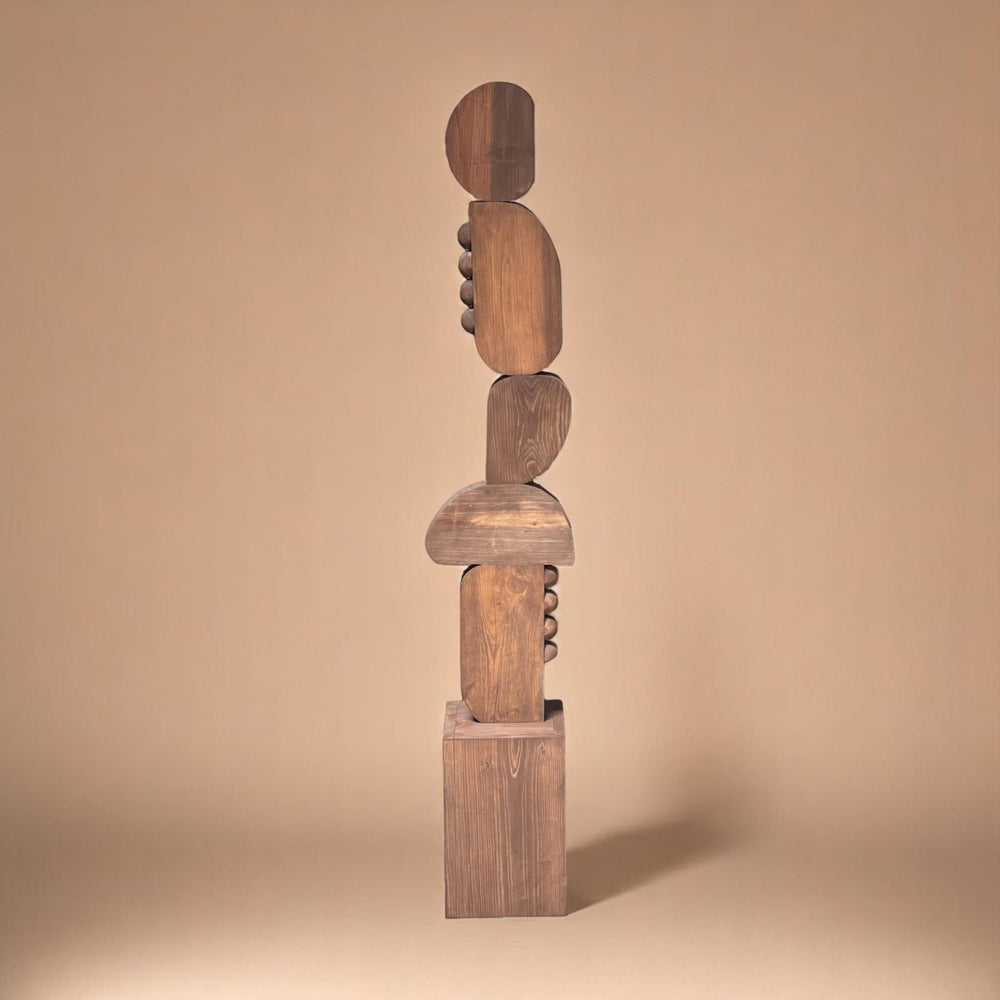 Floor Sculpture made from pine wood with an oak finish. Crafted in Sabana Grande, Honduras, and designed by Diego Olivero Studio.