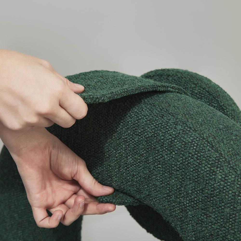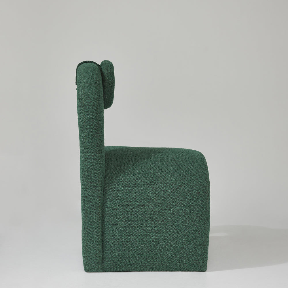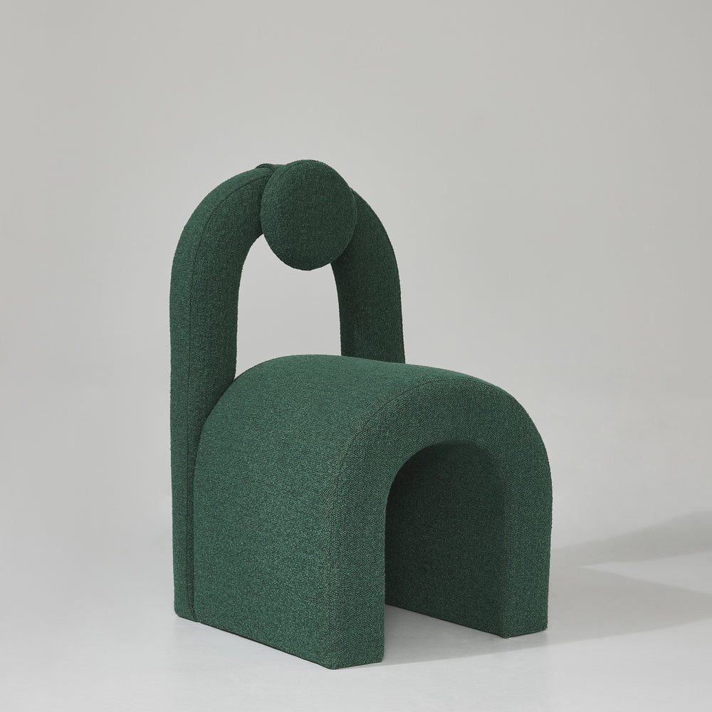 Dining Chair by Tu Taller curves play to create each piece, which is upholstered in green fabric. COM available.