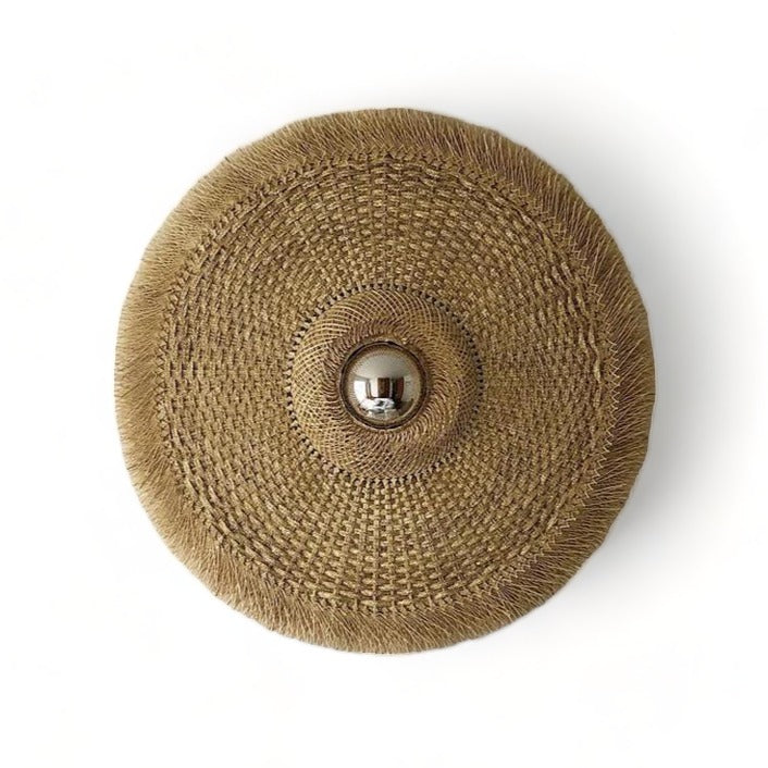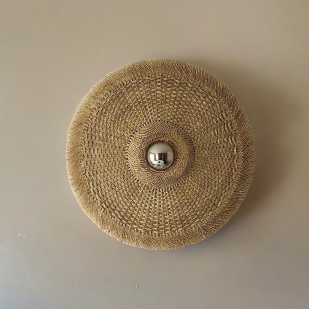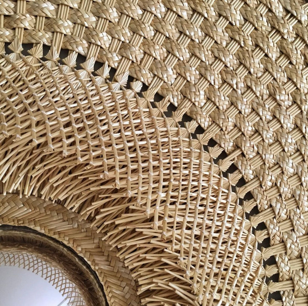 Popotillo Wall Piece crafted from natural fibers, featuring a 20cm diameter fish-eye mirror.
