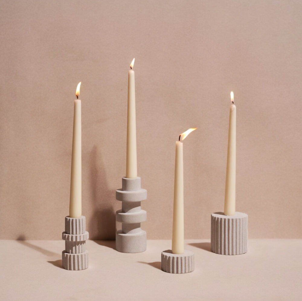 Natural sandstone taper candle holder. Handcrafted in India. Fair Trade Certified.