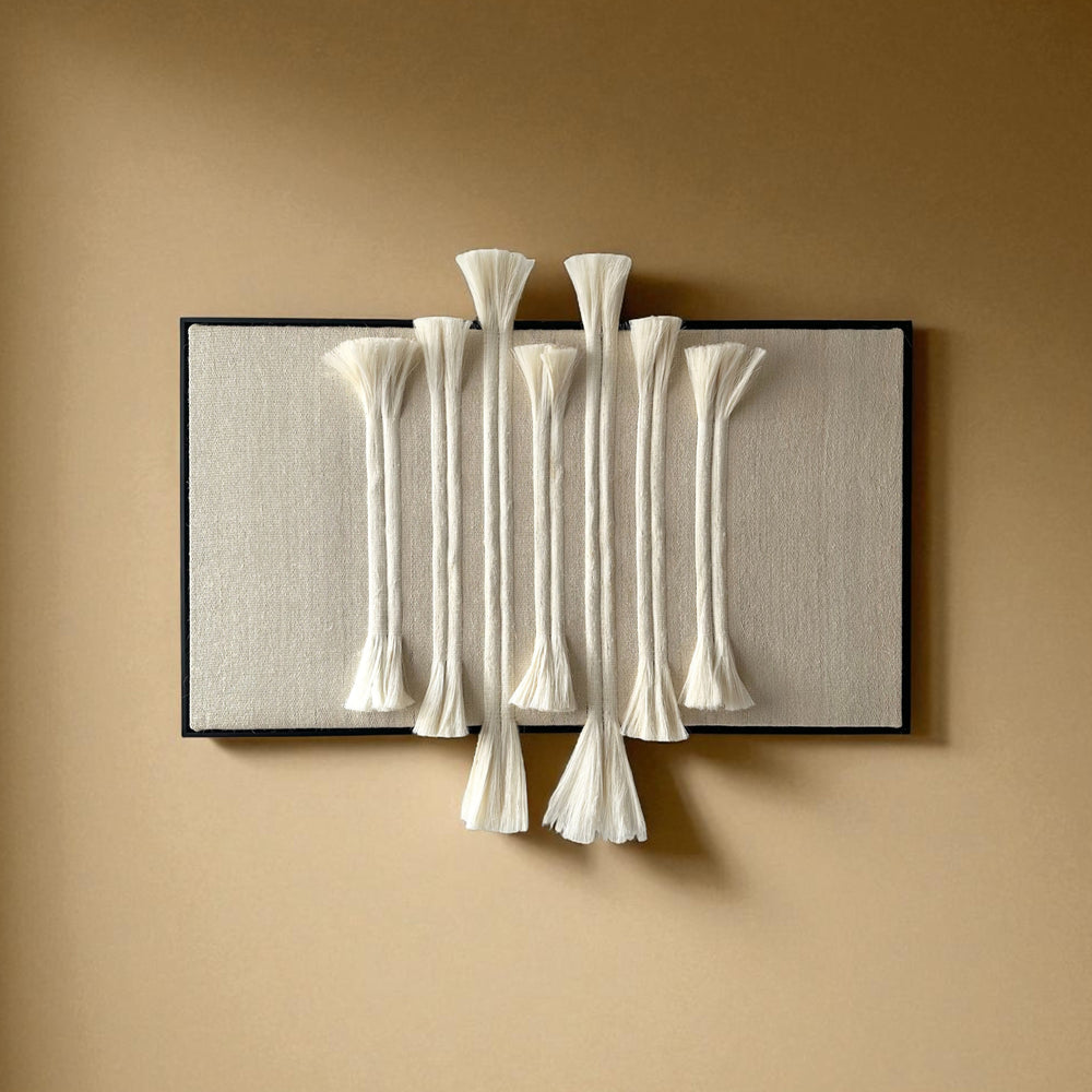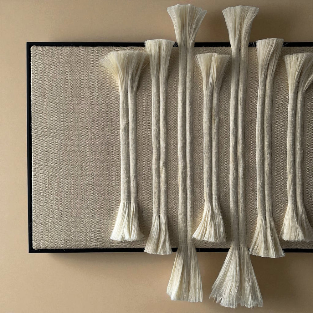 Sansevieria, henequén, cotton, black wood frame.