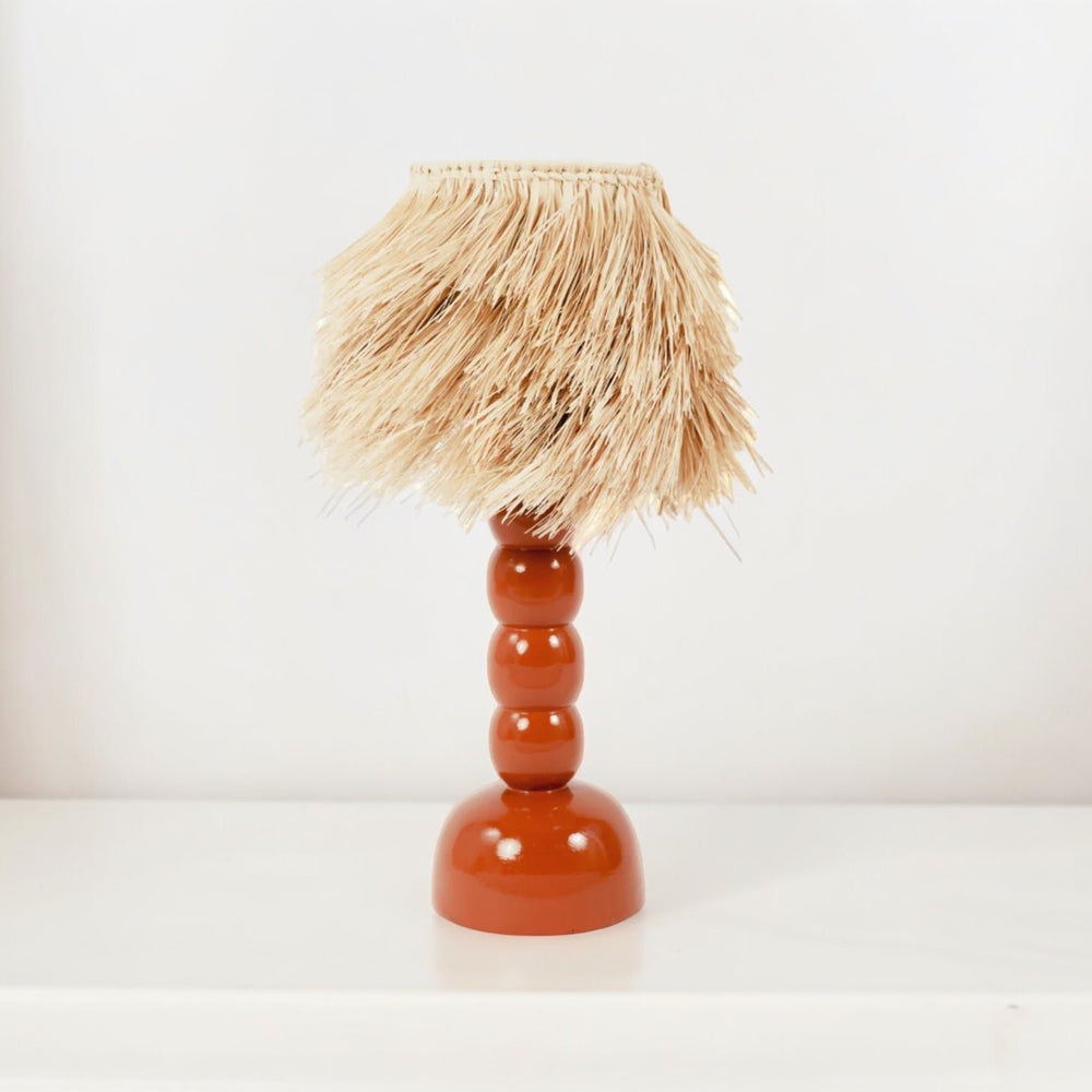 Parota Wood with Laquered Paint + Woven Palm Shade