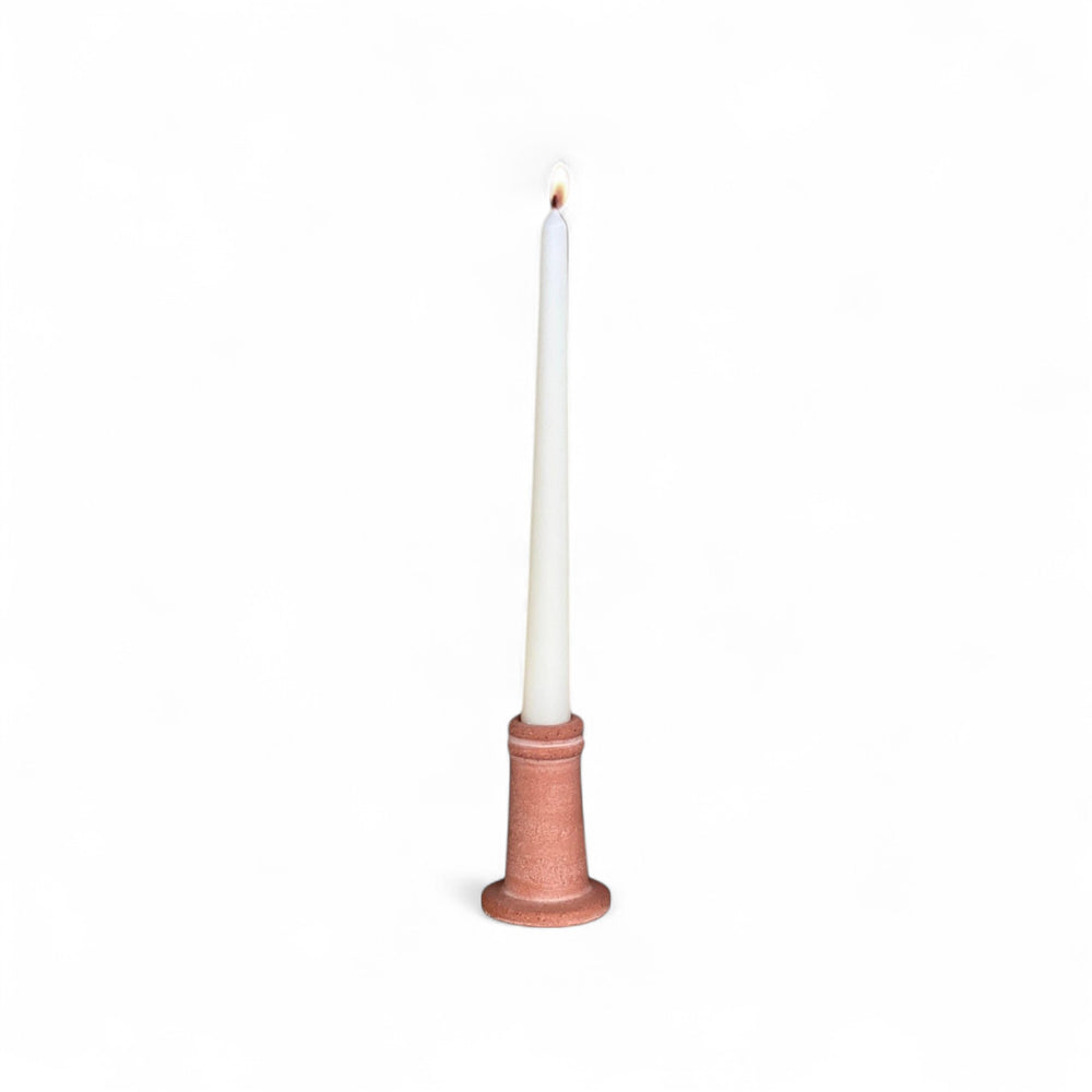 Terracotta taper holder short. Handcrafted by artisans in Sabana Grande, Honduras.