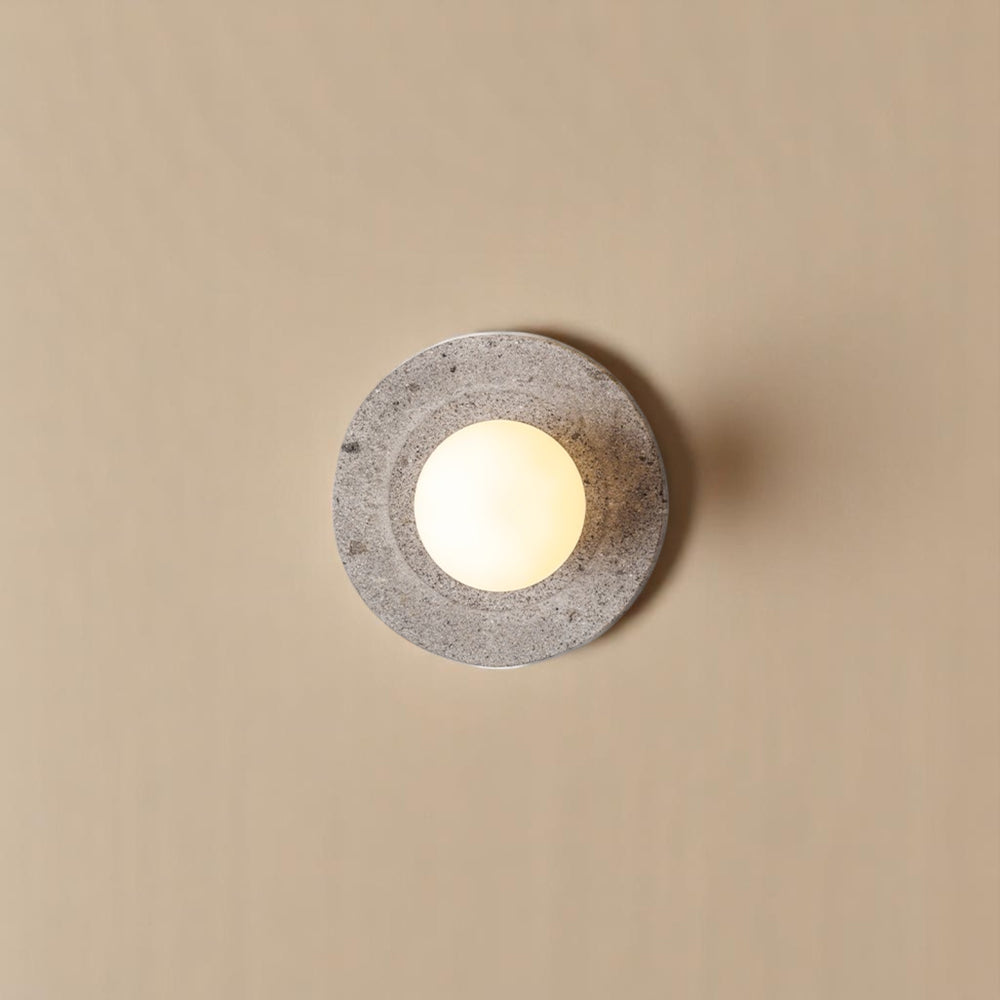Wall sconce made with volcanic stone and frosted glass. 110V.