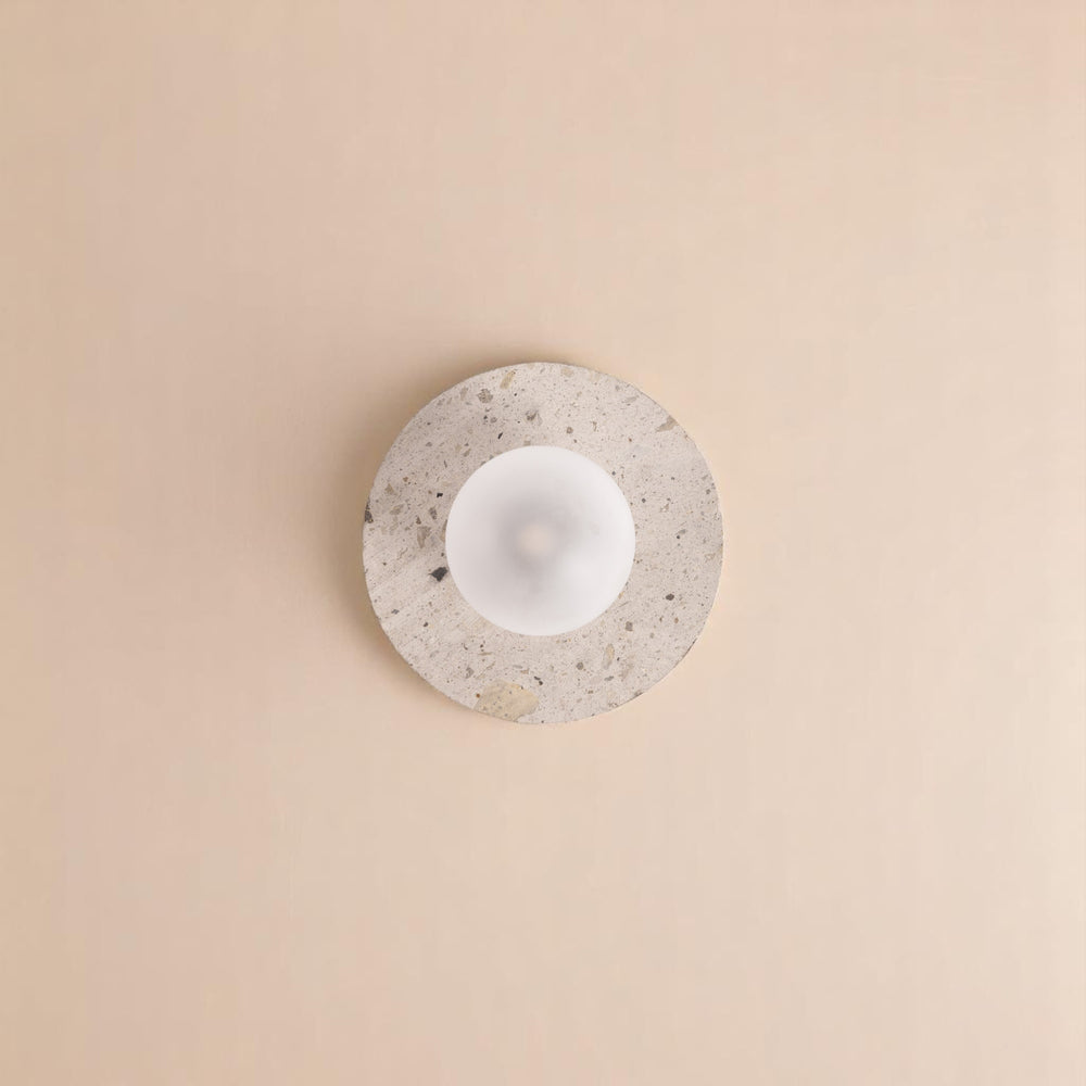 Wall sconce made with white cantera stone and frosted glass. 110V.