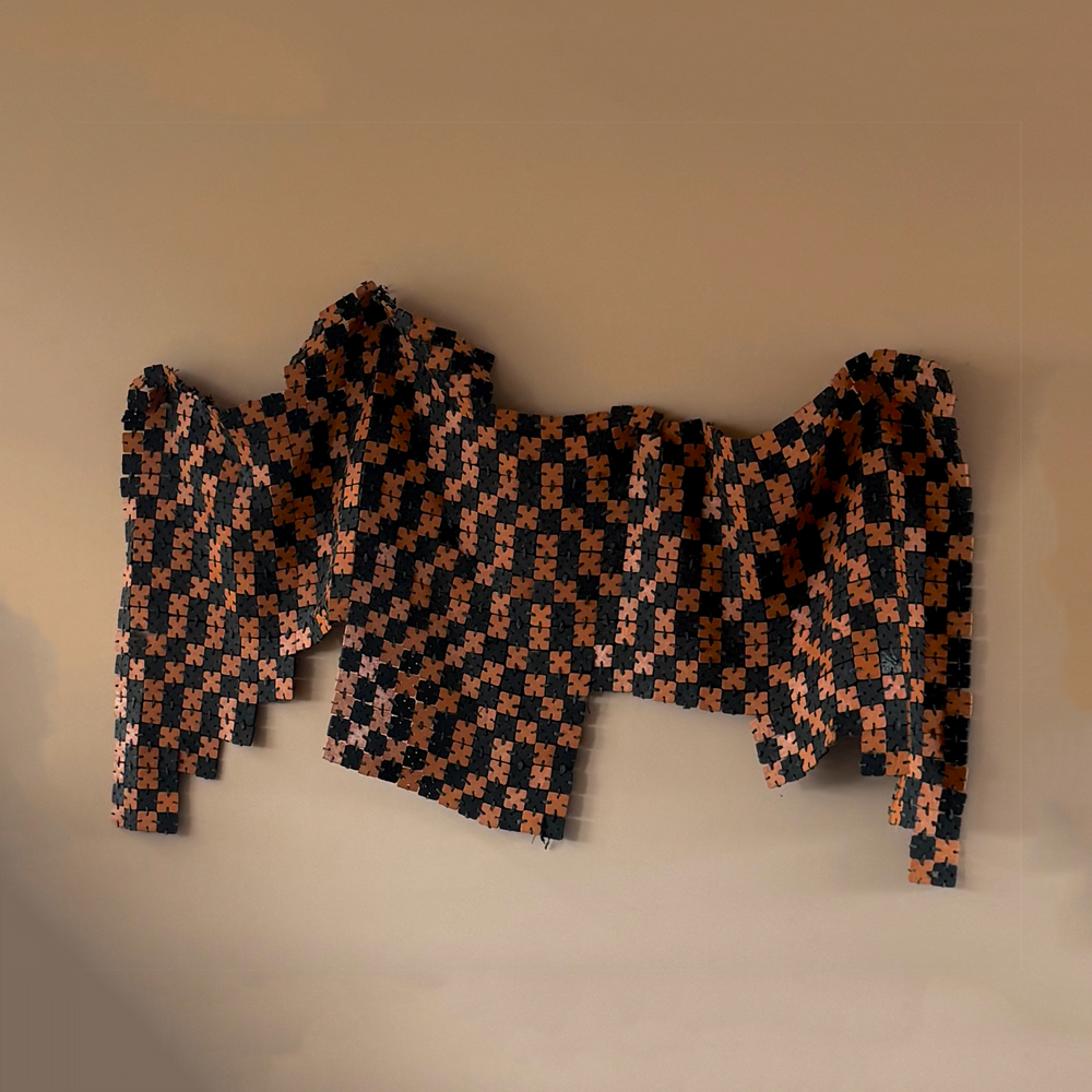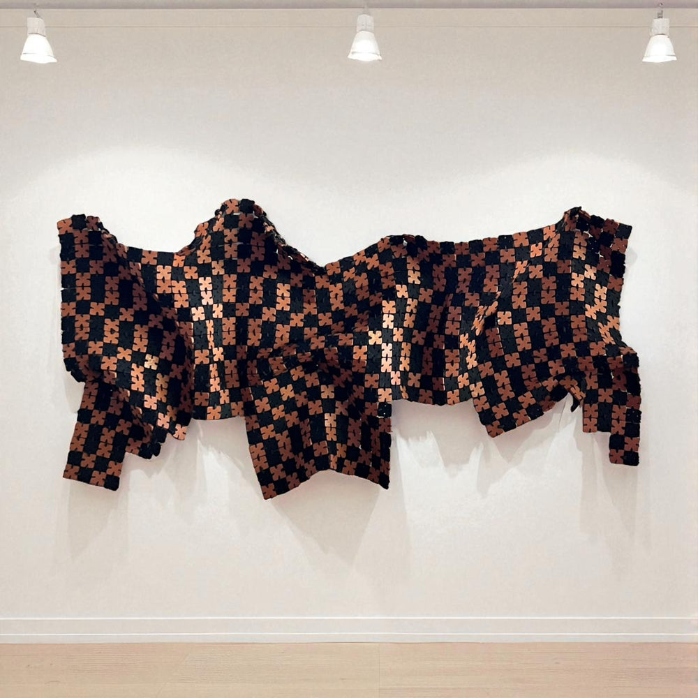 Tela de Barro Mezcla. Black and natural raw terracotta with a pattern. Piece by Diego Olivero Studio.