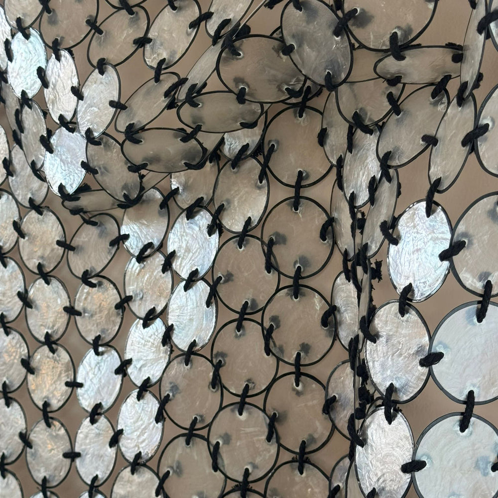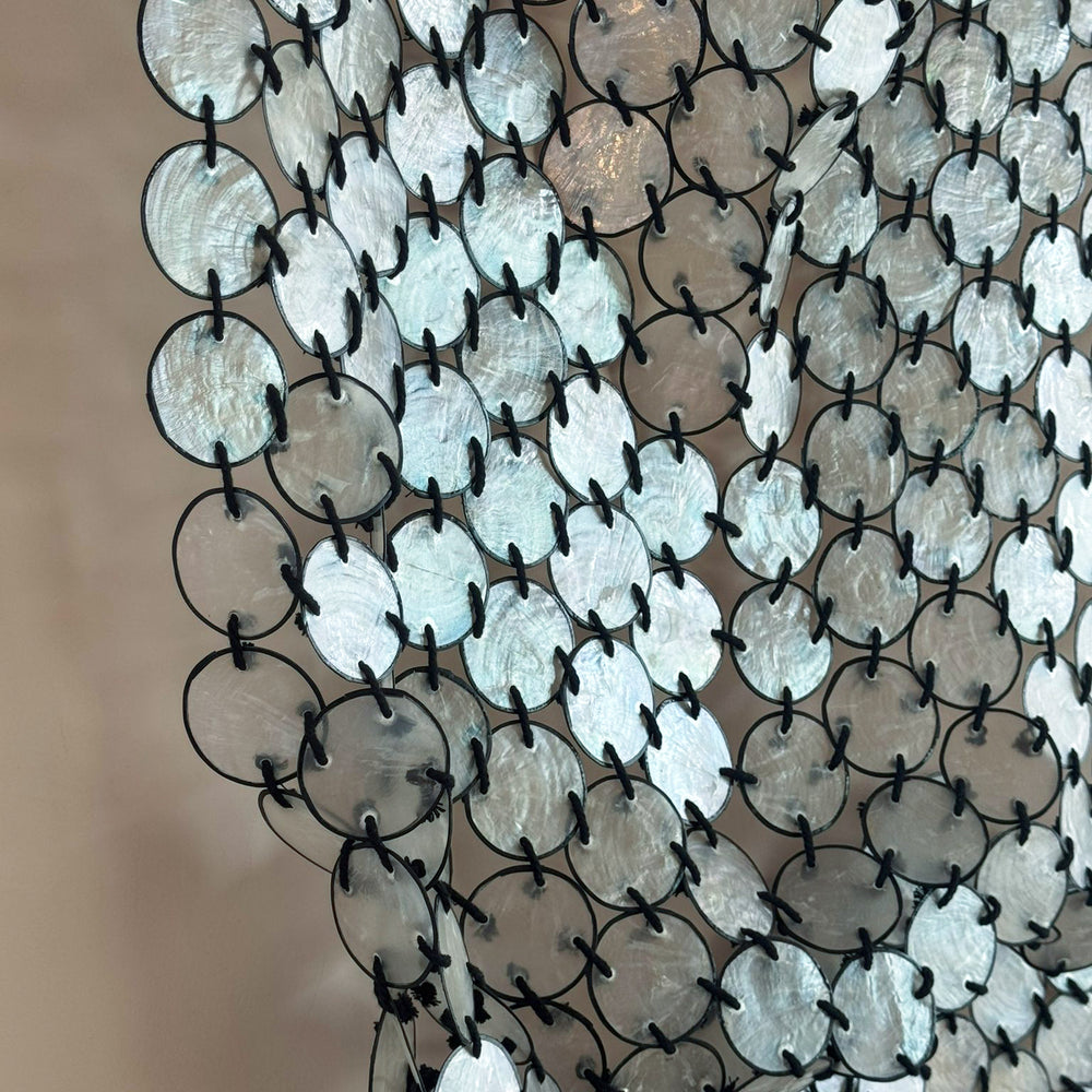 Tela de Capiz by Diego Olivero Studio. This piece is made from individual pieces of capiz are made by artisans in the Philippines. Each piece will have slight variations. Made to Order.