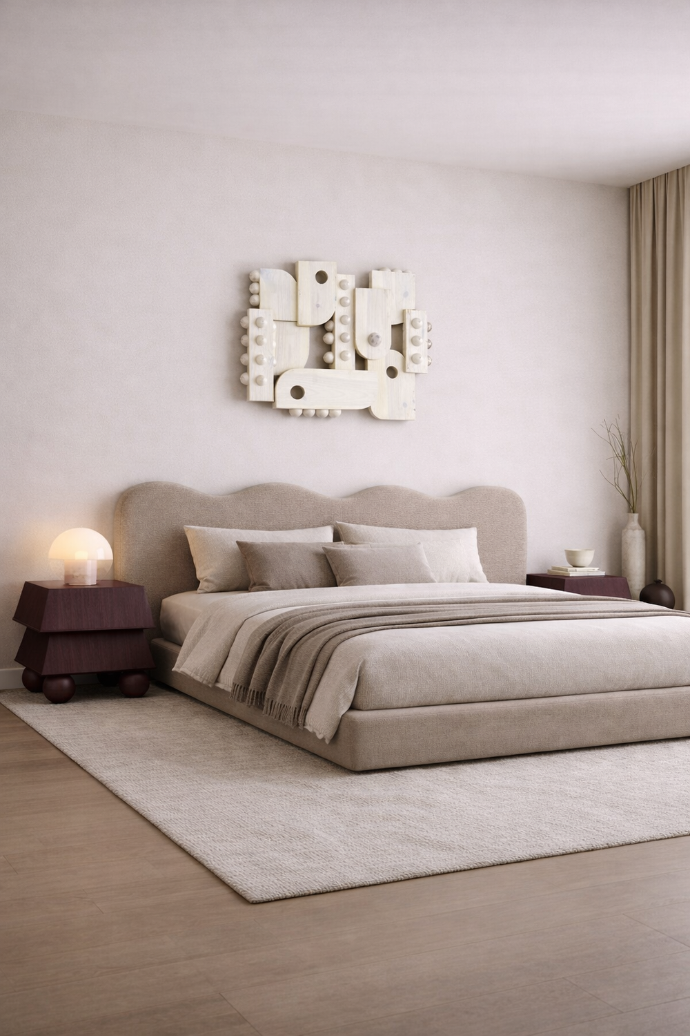 Wall art made from pine wood with a whitewashed finish. Crafted in Sabana Grande, Honduras, and designed by Diego Olivero Studio.