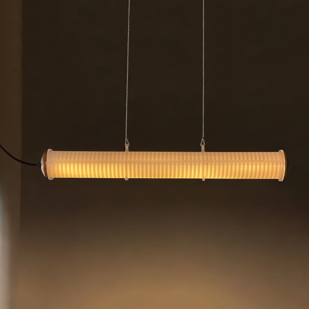 VASUKA is a suspended luminaire that explores the subtle transparency of recycled parchment paper, revealing a soft and continuous light.Its structure allows several modules to be aligned in series, forming a linear composition reminiscent of a train of light. The result evokes the quiet precision and material honesty often found in Japanese design, where simplicity and rhythm coexist in balance.